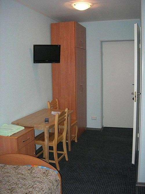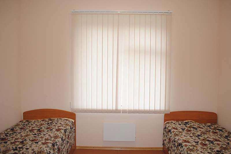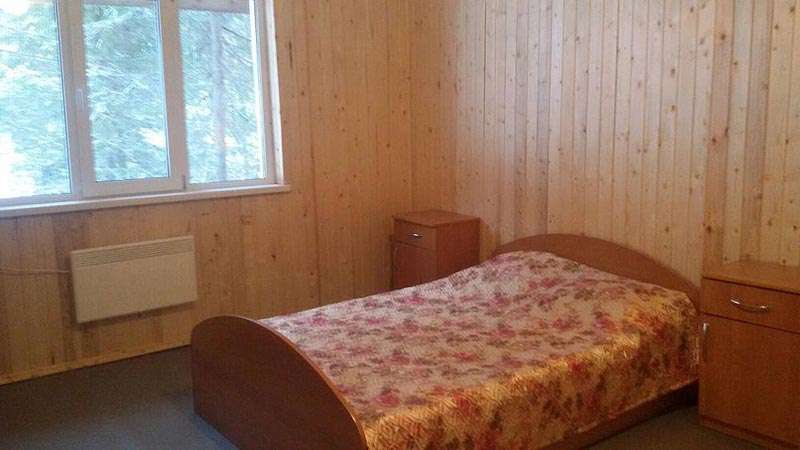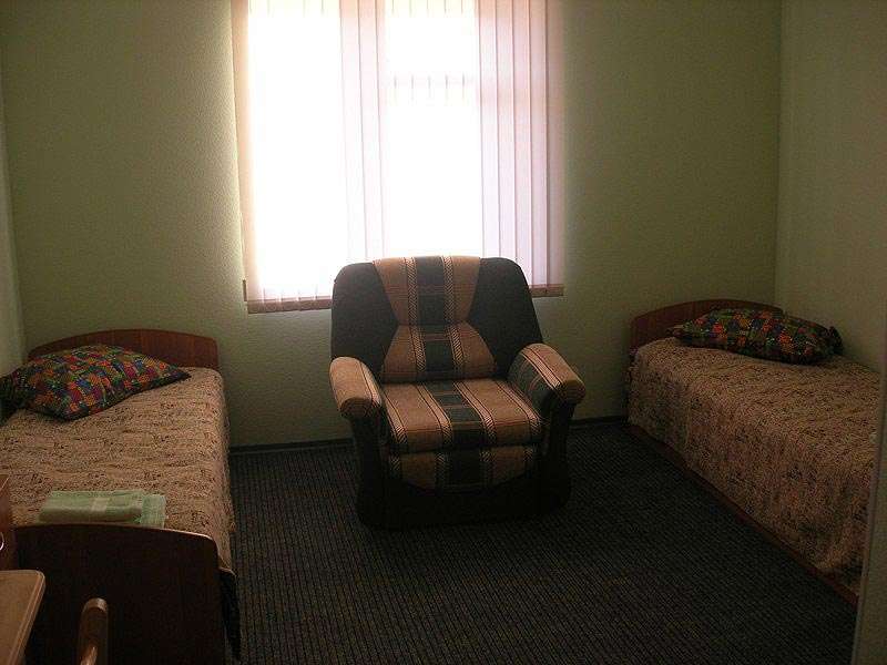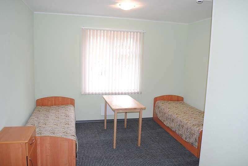 В двухместных номерах стоят по две одноместных кровати или одна двуспальная кровать, шкаф для одежды, тумбочка, телевизор. Есть своя туалетная комната с душевой кабиной.