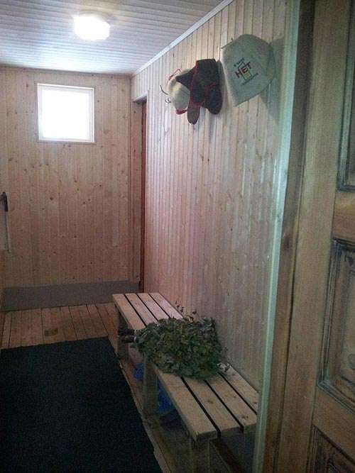 Русская баня на дровах рассчитана на единовременное посещение для восьми человек. В бане просторная комната отдыха, отлична качественная парилка. Обязательно воспользуйтесь березовыми вениками. А после парилки прямо с пирса можно окунуться в прохладное озеро. Зимой для опытных посетителей всегда остается открытая прорубь с ледяной водой.