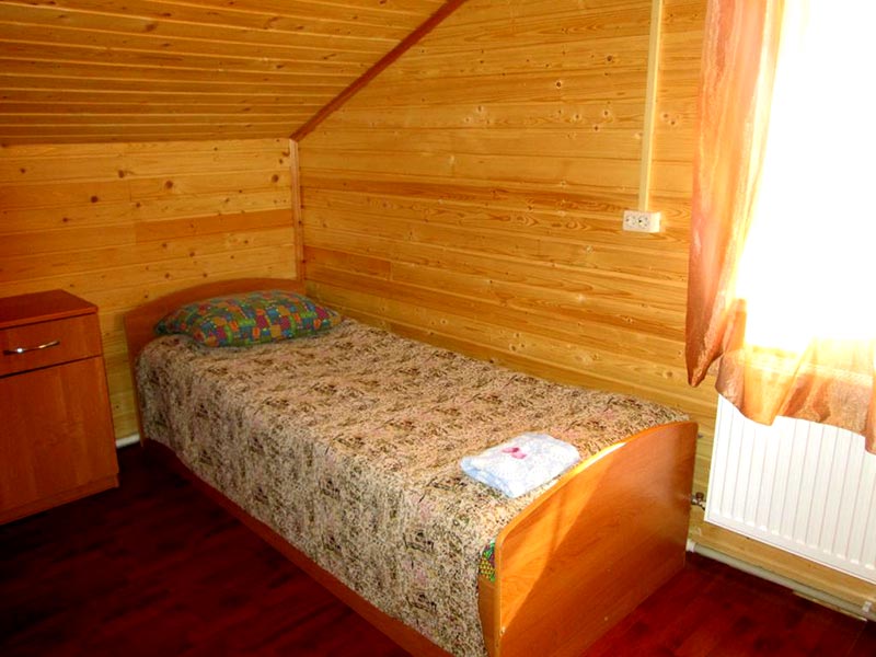 Для вашего комфортного отдыха на территории расположились четыре благоустроенных деревянных коттеджа на 12 гостей, со всеми удобствами и кухней. Один деревянный коттедж с тремя отдельными двухместными номерами. А также гостевой дом с одноместными, двухместными, трехместными номерами. В каждом номере есть туалетная комната и душ. В гостевом доме есть большая общая кухня, на которой можно самостоятельно готовить. Желающие могут заказать комплексное питание в кафе.
